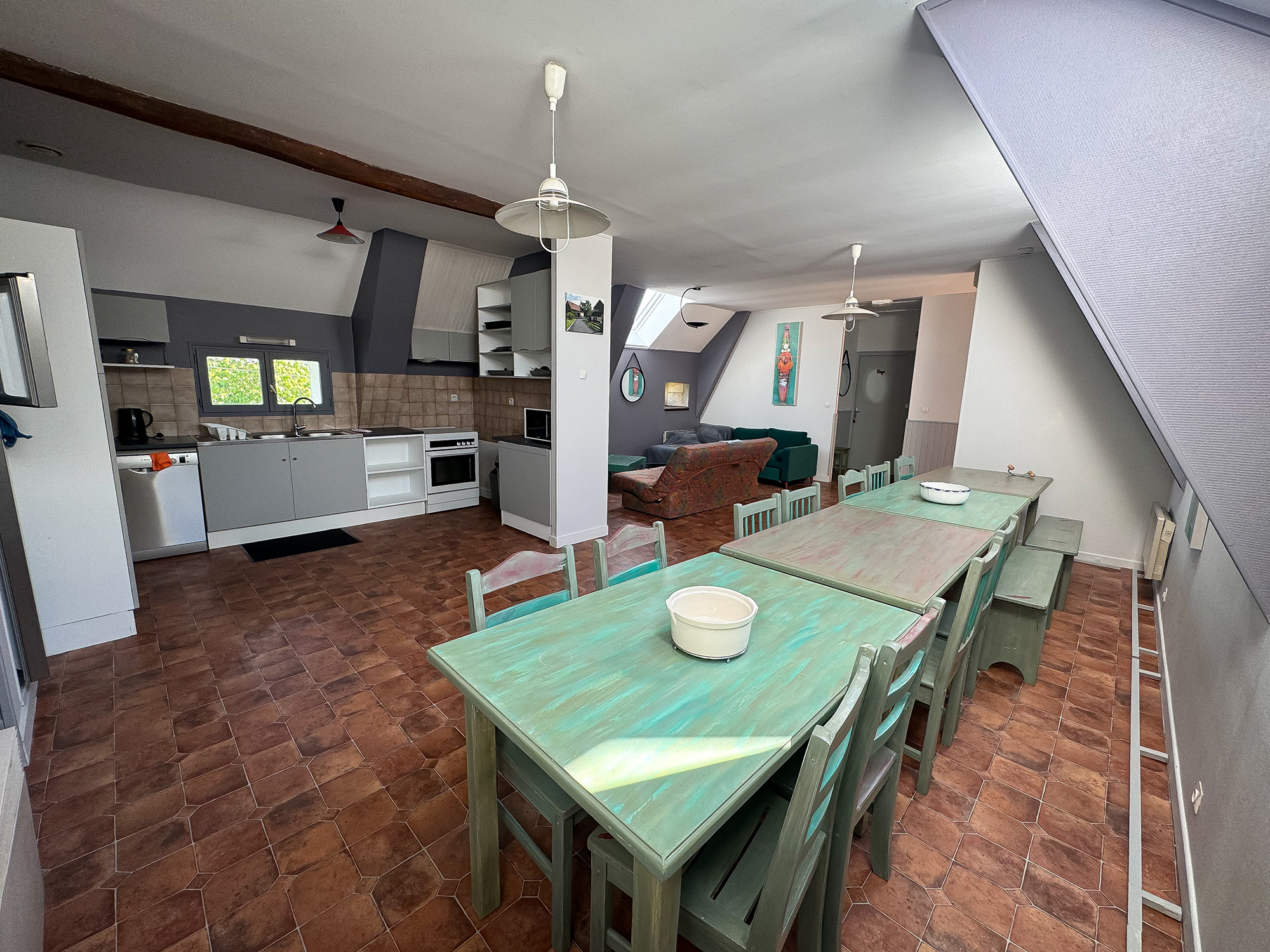 Vous pourrez admirer le charme des poutres apparentes de ce spacieux hébergement cosy, disposant d’une entrée indépendante et accessible aux PMR.